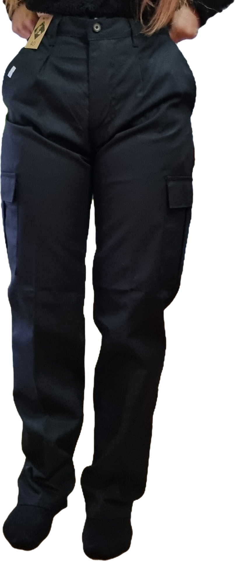 Calça nacional 65%poliéster 35%algodão com bolsos laterais.